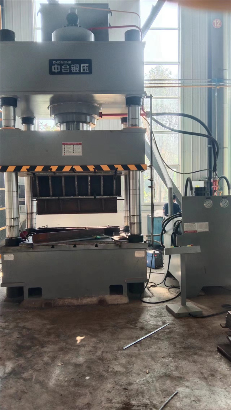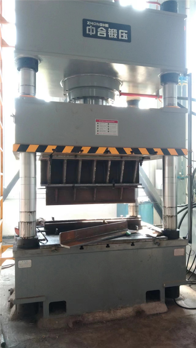 630噸金屬折彎壓型液壓機是用于金屬厚板的折彎壓型的設(shè)備,整體采用三梁四柱結(jié)構(gòu),利用金屬的延展性,通過模具將厚板壓型折彎。如下圖: